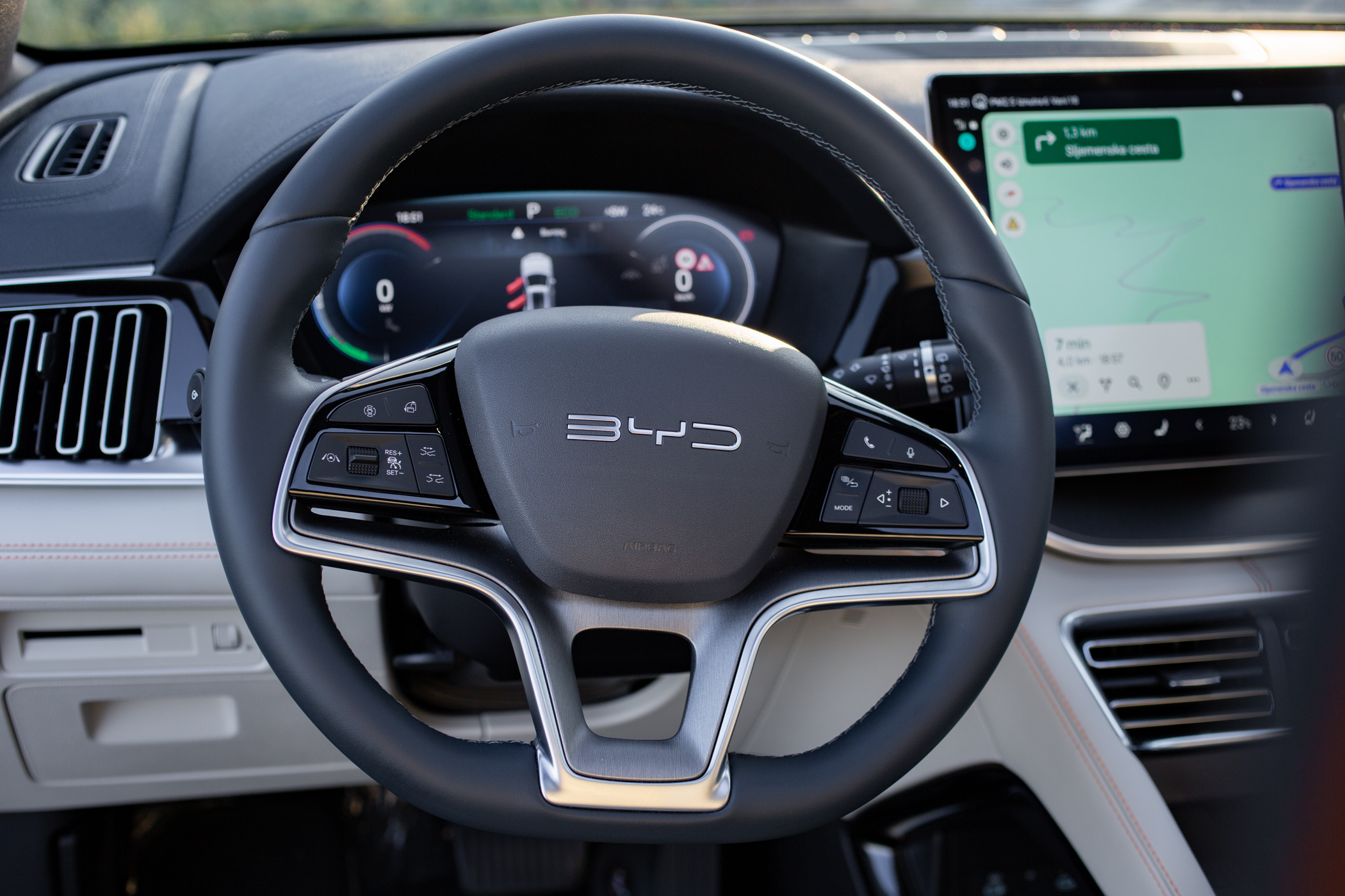 Ima i mogućnost zakretanja, kao i nedavno testirani manji Dolphin Surf, gdje možete birati kako vam je ugodniji pregled sustava. Integrirana navigacija je odlična, a reakcije sustava imaju i hrvatskog govornika, dok i cijeli sustav ima hrvatski prijevod.