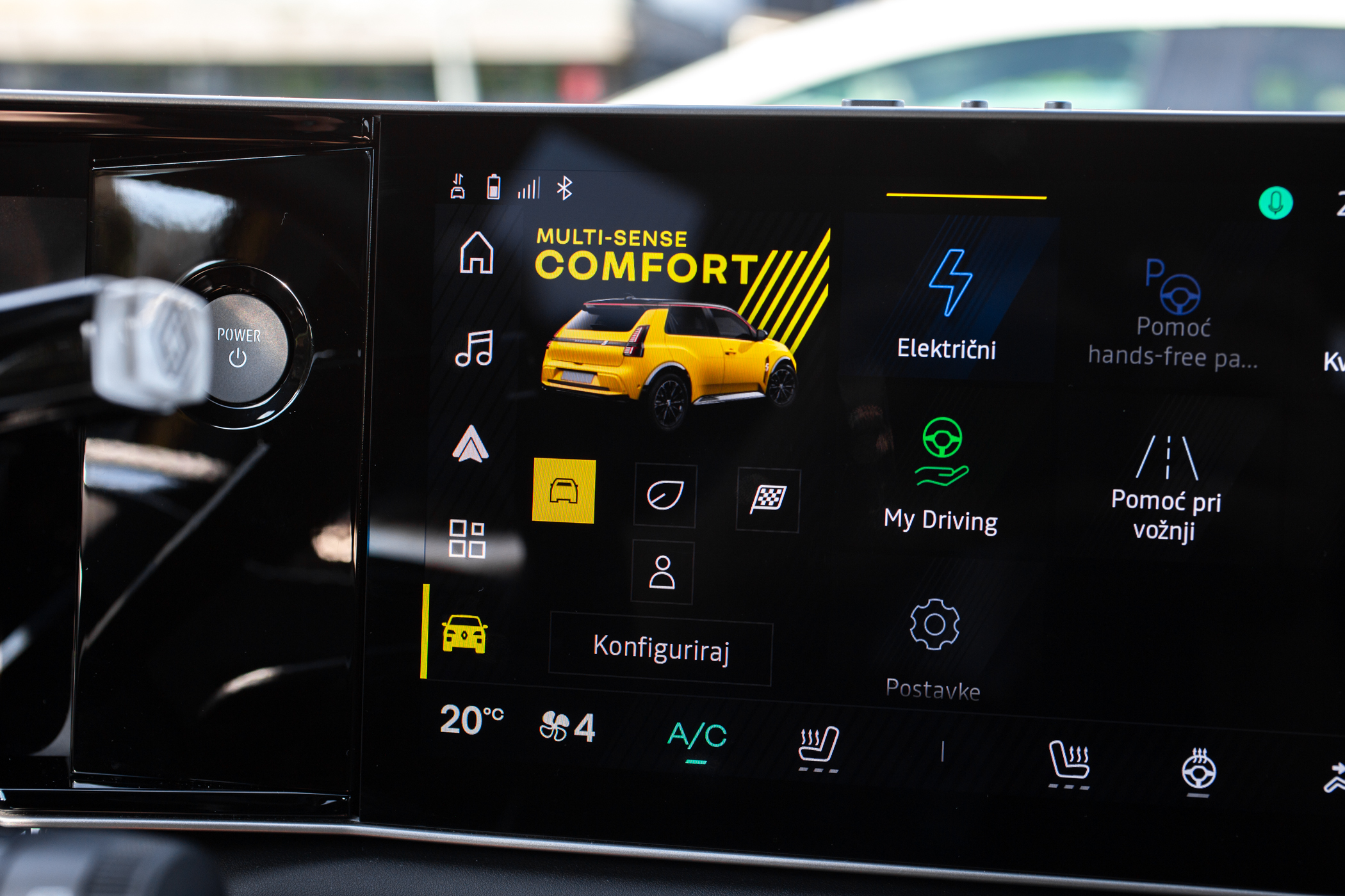 Lijevi rub zaslona zauzimaju stalne kratice za brzi pristup bitnim postavkama, dok se pri dnu smjestila kontrola klimatizacije te grijanja sjedala i volana.